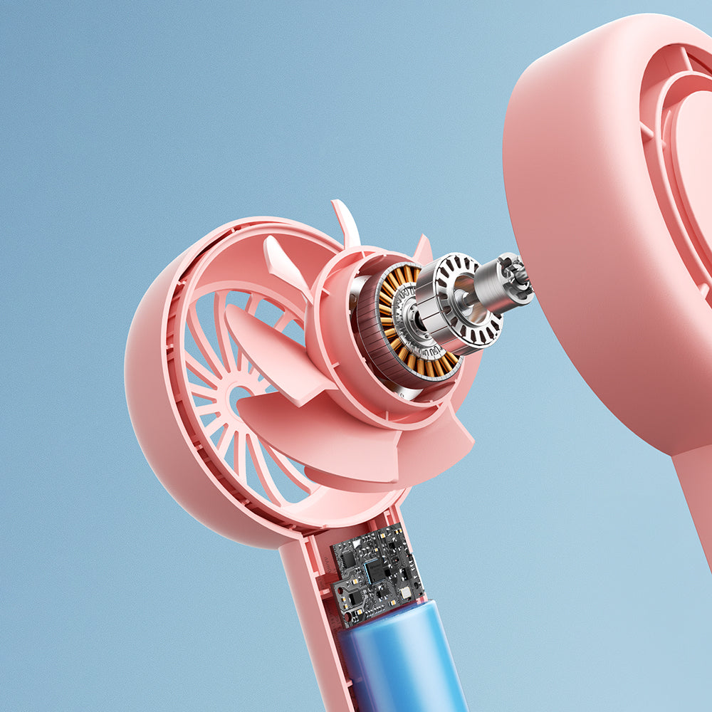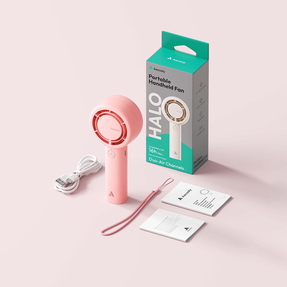 Aecooly PB01 İç Spiralli Çift Halka Hava Akışı Teknolojili 5 Kademeli Portatif Soğutucu El Fanı Pembe