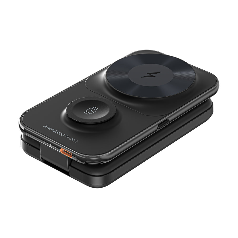 Amazingthing Thunder Pro Mag 6in1 PD22.5W Katlanabilir Standlı Kablosuz Powerbank 8000mAh Siyah