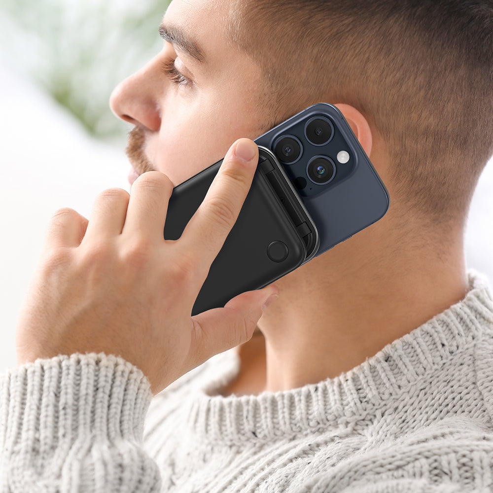 Katlanabilir stand tasarımı sayesinde hem masaüstü kullanımında bir şarj standı hem de hareket halindeyken taşınabilir bir powerbank olarak kullanılabilir. Ergonomik tasarımı ile çantanıza veya cebinize rahatça sığar, böylece her zaman yanınızda taşıyabilirsiniz.