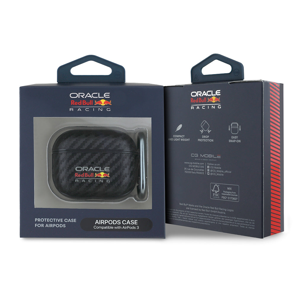 Apple Airpods 3. Nesil Kılıf Redbull Orjinal Lisanslı PU Karbon Fiber Tasarımlı Askı Aparatlı Kapak Siyah