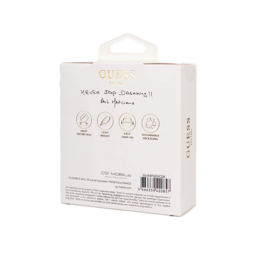 Guess'in modaya uygun ve trend bir görünümle her detayda kaliteyi öne çıkarmasını sağlayan bu özel tasarım ile sizde özel hissedin. Guess'in kendi sektöründeki prestijini ve tarzını yansıtan bu kılıf, kişisel aksesuarlarınızla bütünleşerek size özel bir stil oluşturmanıza olanak tanıyor. Eşsiz tasarımı, markanın airpods aksesuarlarının tek yetkili satıcısı olan firmamız güvencesiyle, stilinize değer katmayı vaat ediyor.