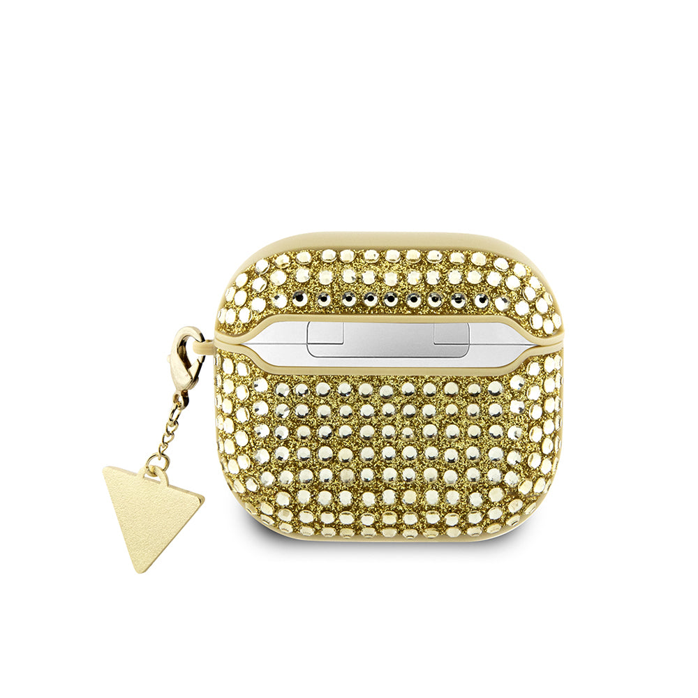 Airpods 4 Kılıf Guess Orjinal Lisanslı Parıltılı Taş Kaplamalı Üçgen Logo Süs Zincirli Kapak