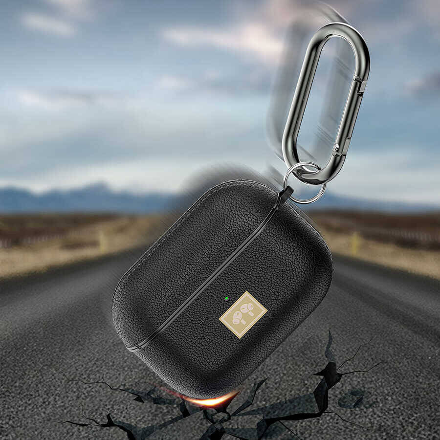 Airpods Pro 2 Kılıf Deri Görünümlü Askı Aparatlı Wlons Kılıf Siyah