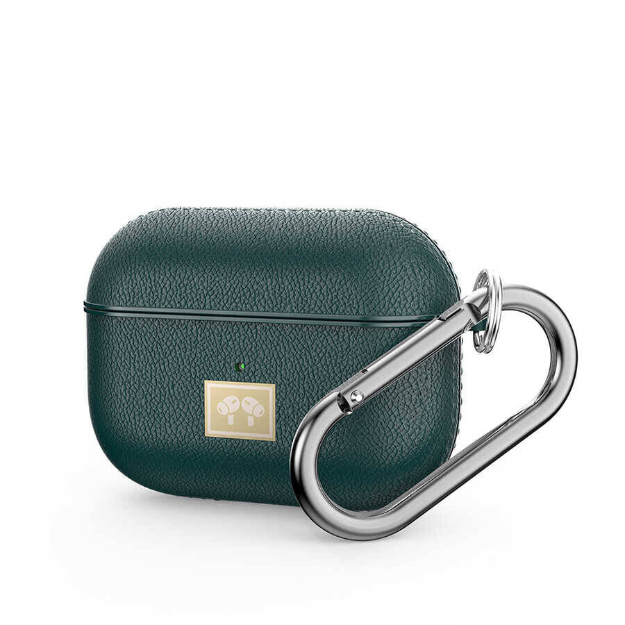 Airpods Pro 2 Kılıf Deri Görünümlü Askı Aparatlı Wlons Kılıf Koyu Yeşil