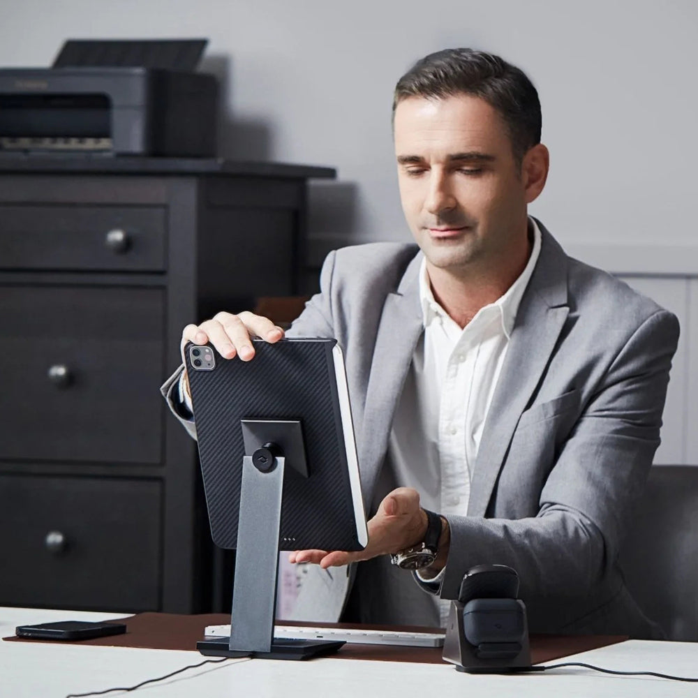 Pitaka Ultra-Slim Classic Serisi iPad kılıfı, aramid fiber malzeme ve Fusion Weaving teknolojisi ile hem dayanıklılık hem de estetik sunar. Yalnızca 1.3 mm inceliğindeki tasarımıyla cihazınıza fark edilmeyen bir zariflik katar, günlük kullanımda hafifliği ve modern dokusuyla öne çıkar.