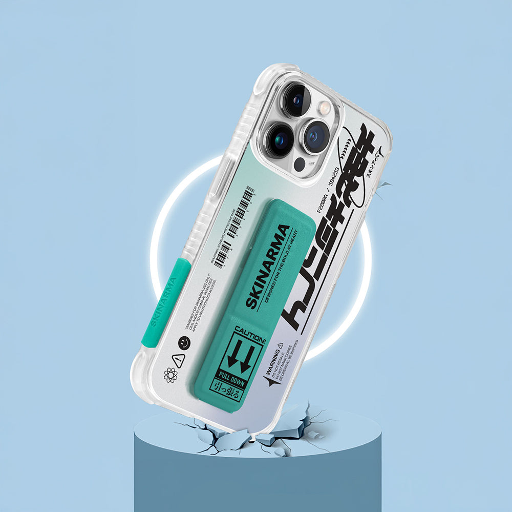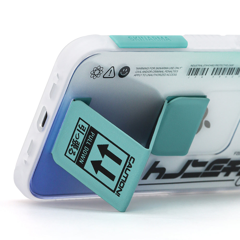 Apple iPhone 13 Kılıf Skinarma Şeffaf Desenli Airbag Tasarımlı Standlı Hakko Kapak Turkuaz