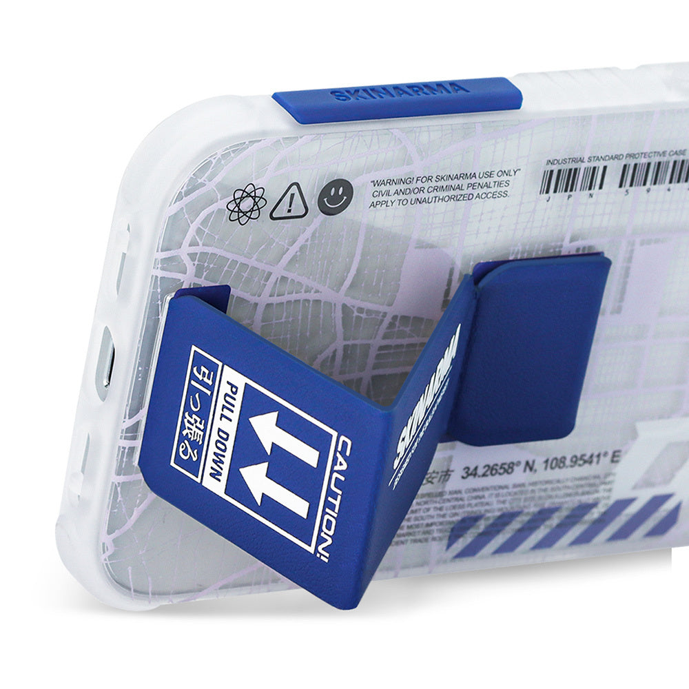 Apple iPhone 13 Kılıf Skinarma Şeffaf Desenli Standlı Ryoiki Kapak Şeffaf-Mavi