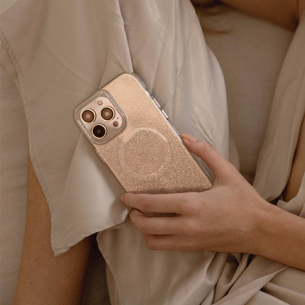 Apple iPhone 14 Kılıf Magsafe Şarj Özellikli Simli Arka Yüzey Coehl Lumino Kapak