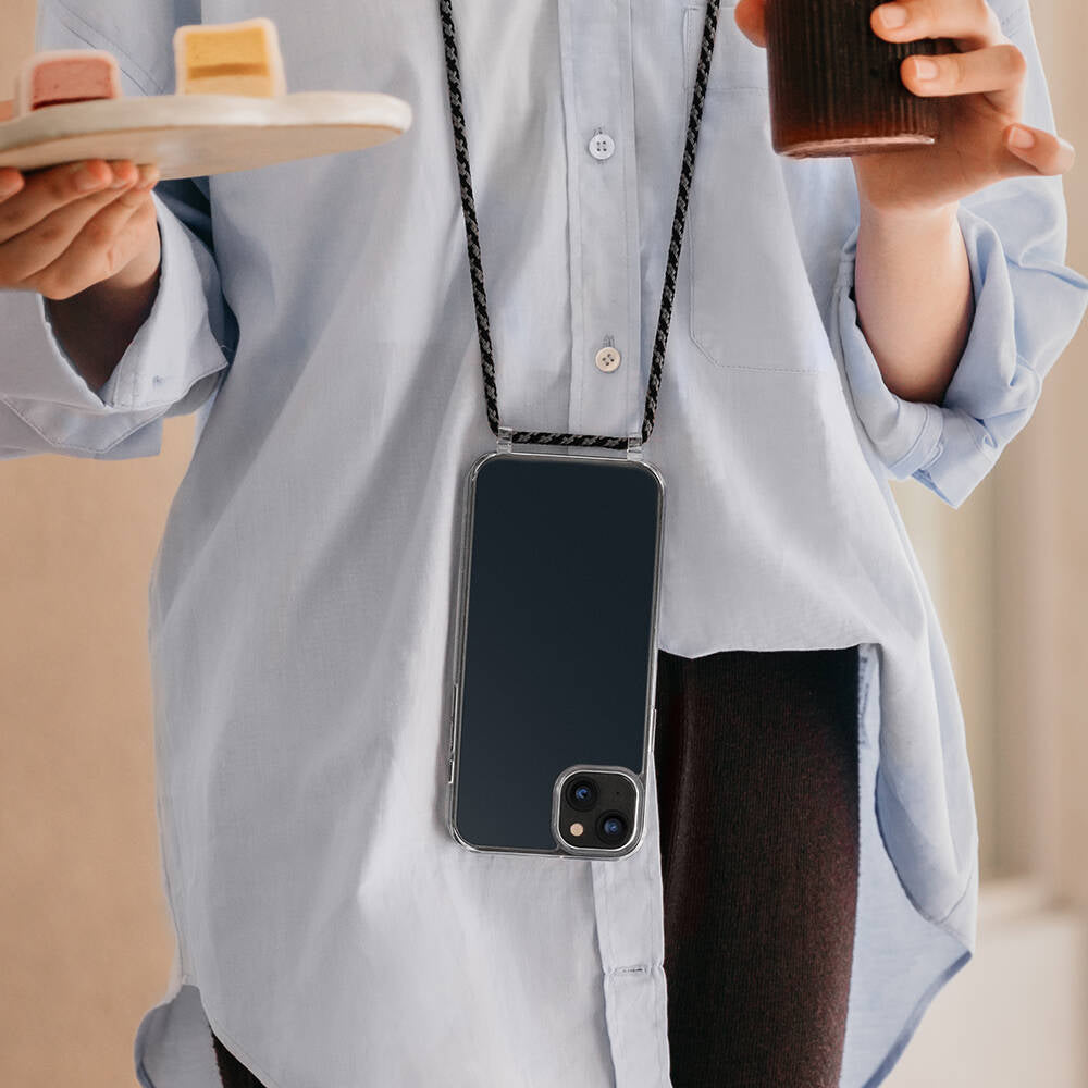 iPhone 14 Plus Kılıf Boyun Askılı Şok Önleyicili Şeffaf Lisanslı Switcheasy Play Kılıf Siyah