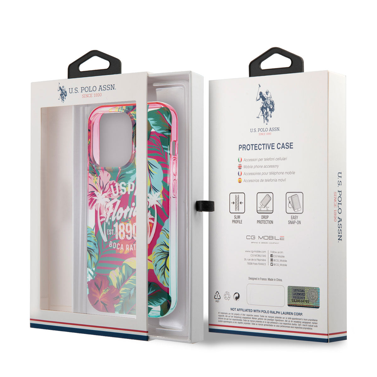 iPhone 14 Pro Kılıf U.S. POLO ASSN. Renkli Yaprak Baskılı Dizayn Kılıf Turuncu