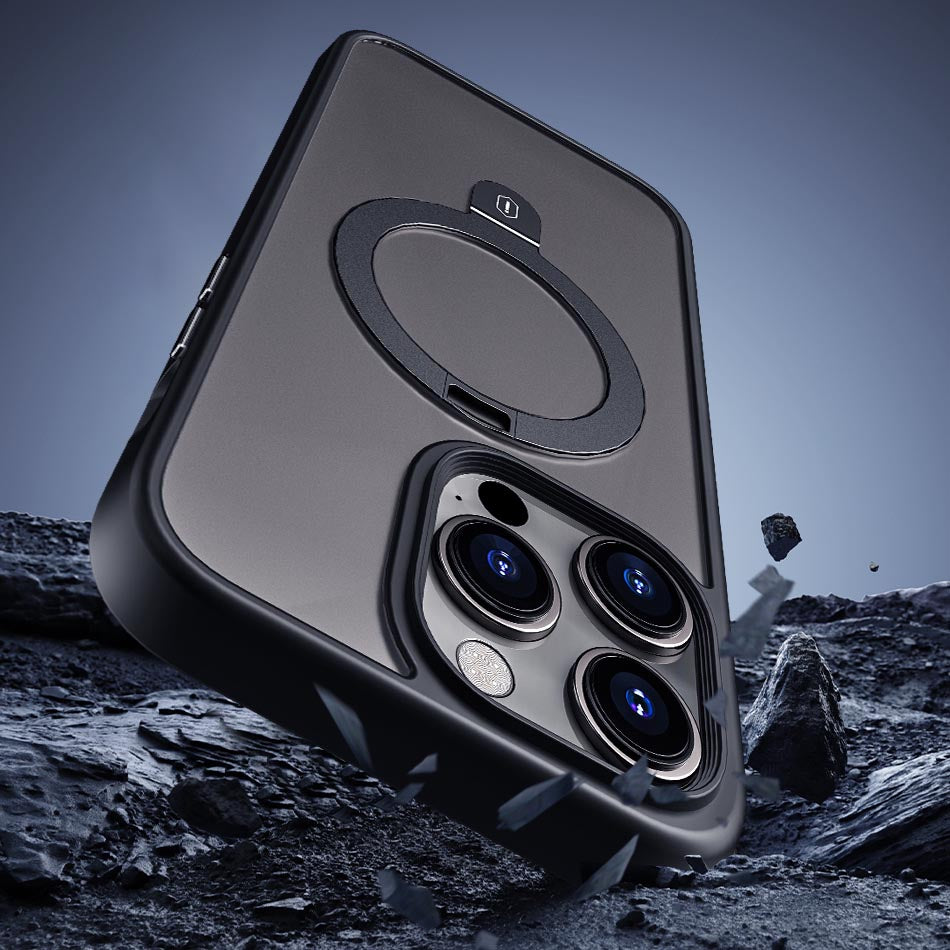 iPhone 14 Pro Kılıf Wiwu ZMM-010 Magsafe Şarj Özellikli Parmak İzi Bırakmayan Mat Transparan Standlı Kılıf Siyah