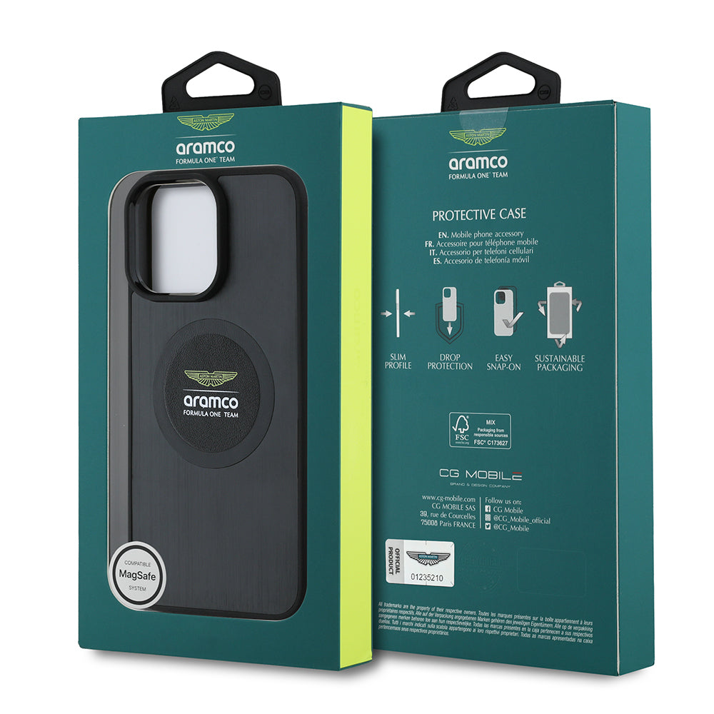 Apple iPhone 14 Pro Max Kılıf Aston Martin Orjinal Lisanslı M-safe Şarj Özellikli Aluminyum Arka Yüzeyli Formula One Team Baskılı Kapak Siyah