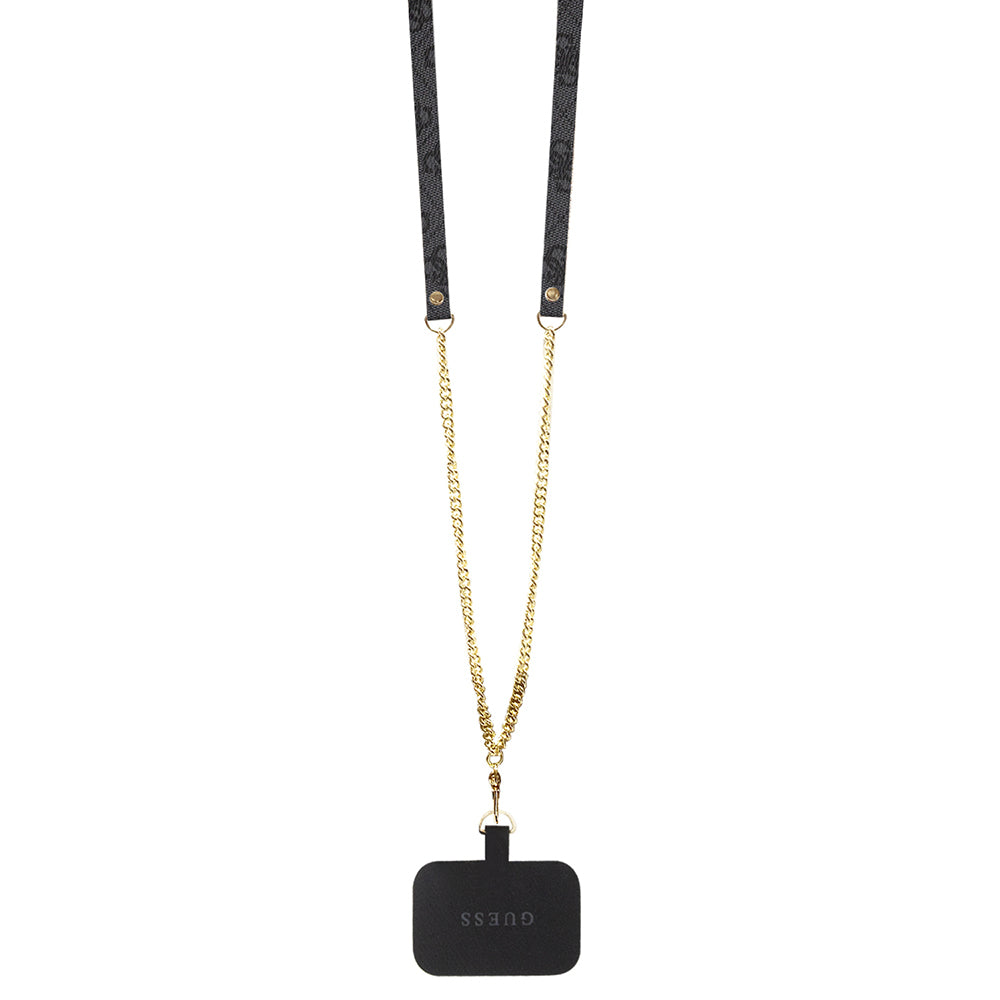 iPhone 14 Pro Max Kılıf Guess Orjinal Lisanslı PU Deri Taşlı Metal Üçgen Logolu Çapraz Vücut Askılı 4G Desenli Kapak