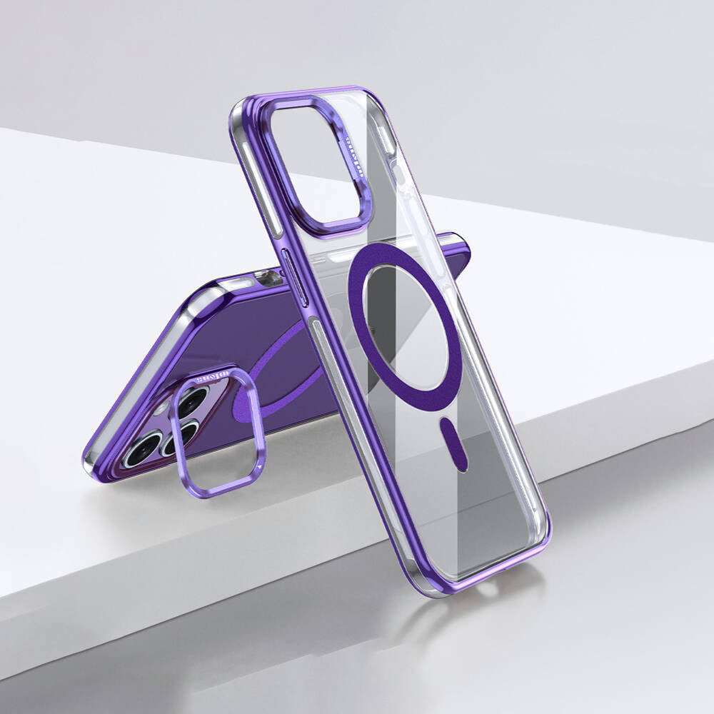 iPhone 14 Pro Max Kılıf Magsafe Şarj Özellikli Wlons Standlı Efsane Kılıf Mor