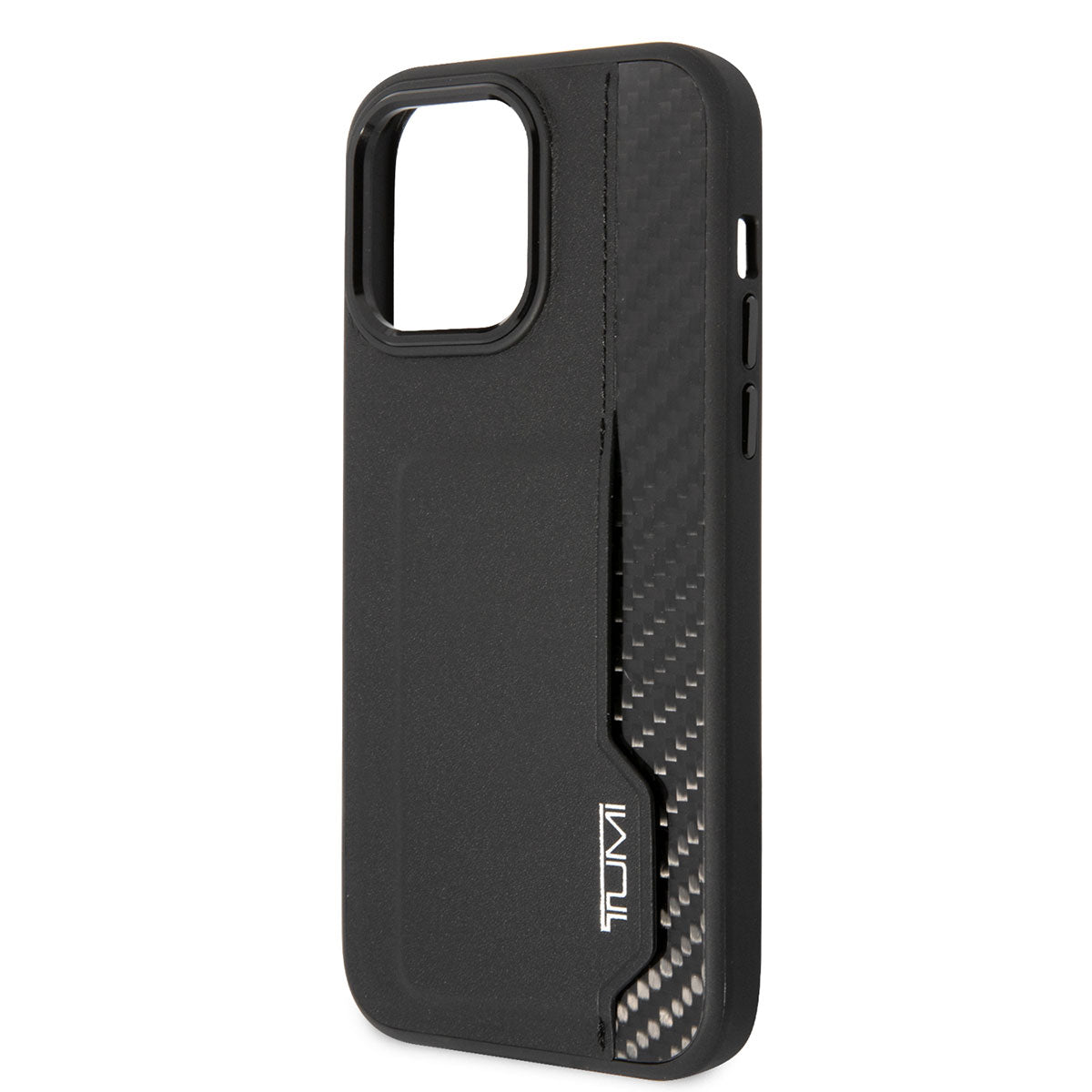 iPhone 14 Pro Max Kılıf TUMI Deri Ve Hakiki Alüminyum Kartlıklı Dizayn Kılıf Siyah