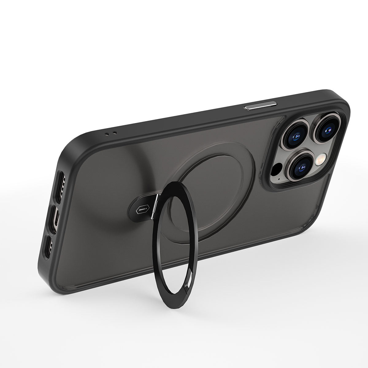 iPhone 14 Pro Max Kılıf Wiwu ZMM-010 Magsafe Şarj Özellikli Parmak İzi Bırakmayan Mat Transparan Standlı Kılıf Siyah