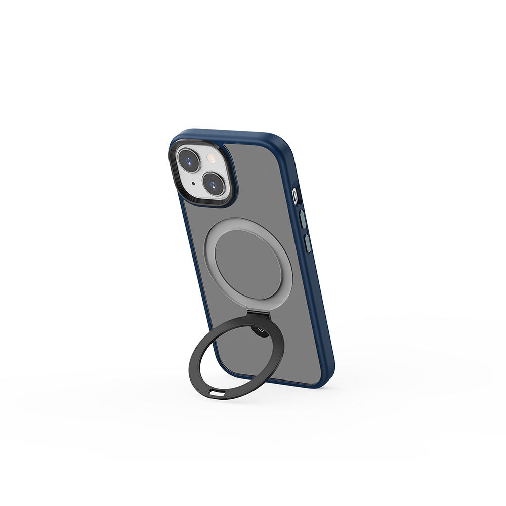iPhone 15 Kılıf Wiwu ZMM-010 Magsafe Şarj Özellikli Mat Arka Yüzey Standlı Kılıf Mavi