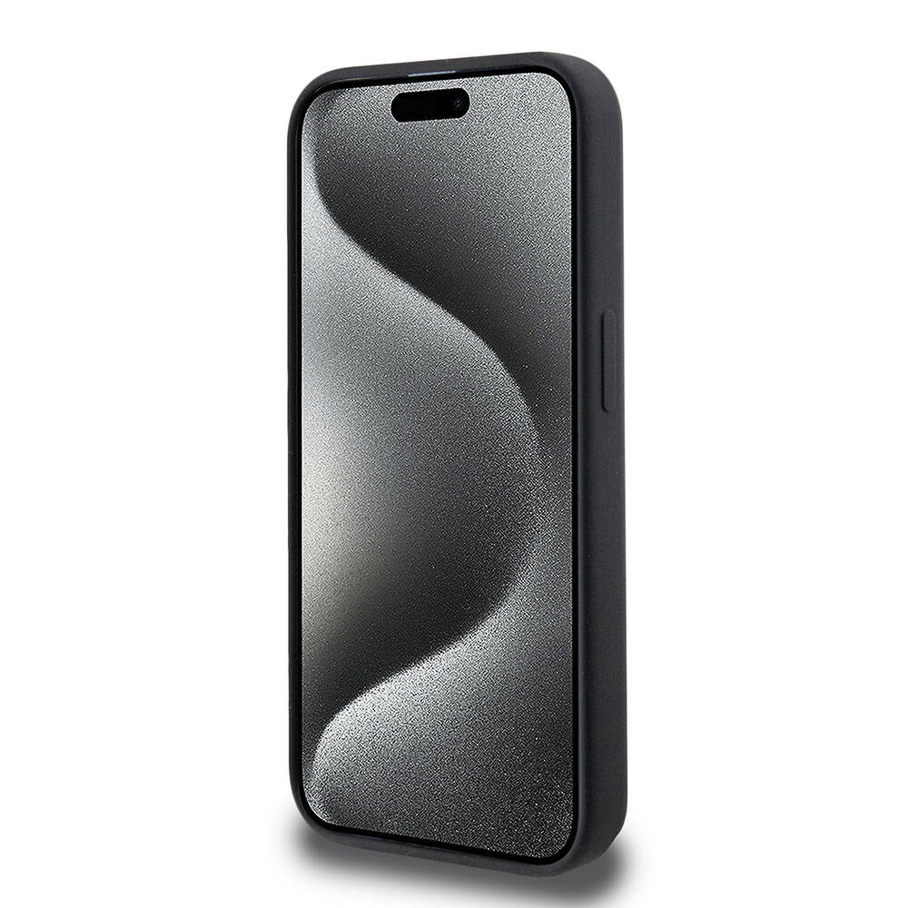 iPhone 15 Pro Kılıf Hello Kitty Orjinal Lisanslı Magsafe Şarj Özellikli Kitty Head Deri Kılıf Siyah