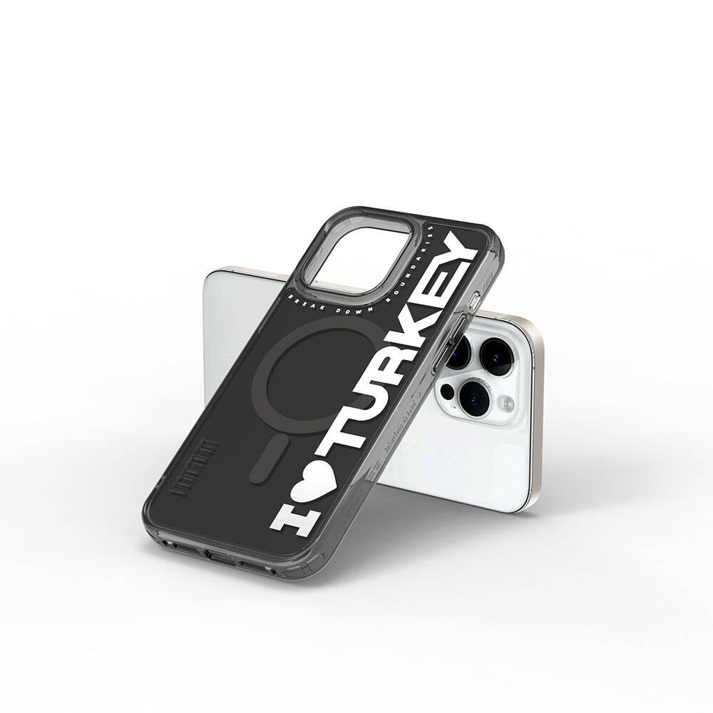 iPhone 15 Pro Kılıf Magsafe Şarj Özellikli I Love Turkey Yazı Desenli Wiwu Turkey E Serisi Kılıf Turuncu