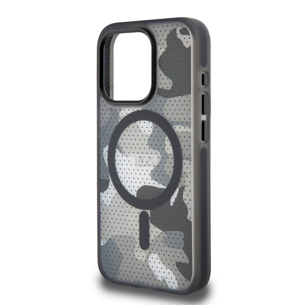 iPhone 15 Pro Kılıf TUMI Orjinal Lisanslı Magsafe Şarj Özellikli Buzlanmış Saydam Ağ Kamuflajı Desenli Kılıf Siyah