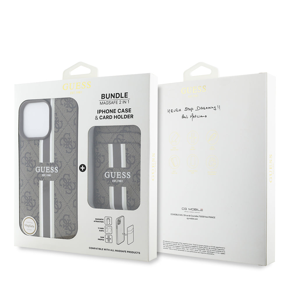 iPhone 15 Pro Max Kılıf Guess Orjinal Lisanslı Magsafe Şarj Özellikli 4G Desenli Çizgili Kartlıklı Kapak