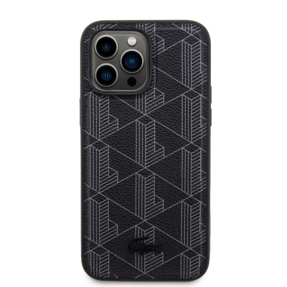 Apple iPhone 15 Pro Max Kılıf Lacoste Orjinal Lisanslı Magsafe Şarj Özellikli PU Deri Görünümlü Karışık Monogram Desenli Kapak