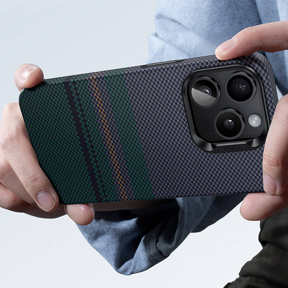 iPhone 15 Pro Max Kılıf Magsafe Şarj Özellikli Karbon Fiber Tasarımlı Benks Aurora ArmorPro Kevlar Kapak