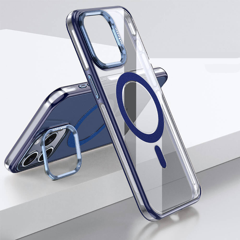 iPhone 15 Pro Max Kılıf Magsafe Şarj Özellikli Wlons Standlı Efsane Kılıf Mavi