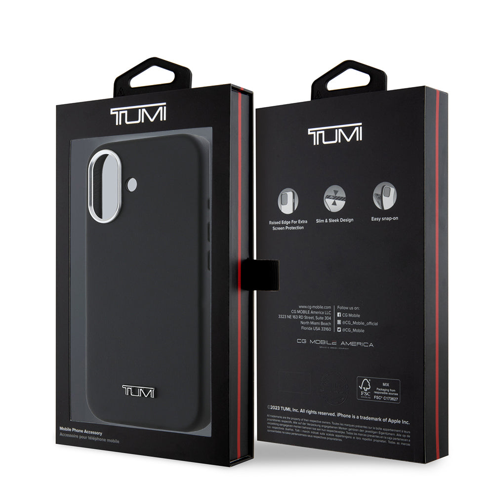 Apple iPhone 16 Kılıf TUMI Orjinal Lisanslı M-safe Şarj Özellikli Metal Yazı Logolu PU Deri Kapak Siyah