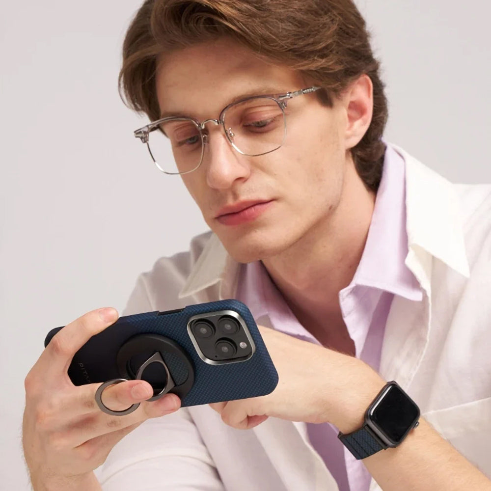 Kılıfın MagSafe uyumlu Grip 3 Stand'ı, dayanıklı aramid fiber ve çinko alaşımdan üretilmiş olup, tek elle tutuşu kolaylaştıran çift halkalı tasarımı ile dikkat çeker. Güçlü manyetik kuvveti sayesinde telefonu güvenle taşır; çekim gücü 1.2kg’a kadar dayanıklıdır. 5.9mm kalınlığı ile cepte taşınabilir olup, masaya yerleştirildiğinde telefonunuzu sabit tutarak lenslerin çizilmesini engeller. Fotoğraf çekerken, arama yaparken veya video izlerken her an elinizin altında rahatça kullanılabilir.