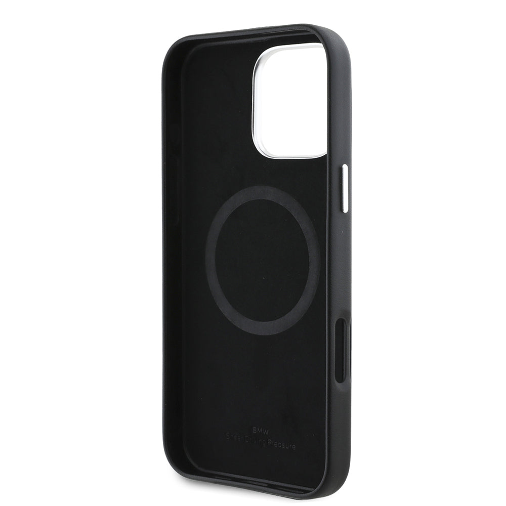 iPhone 16 Pro Max Kılıf BMW Orjinal Lisanslı Magsafe Şarj Özellikli Metal Logolu Tam Kaplama Deri Kılıf Siyah