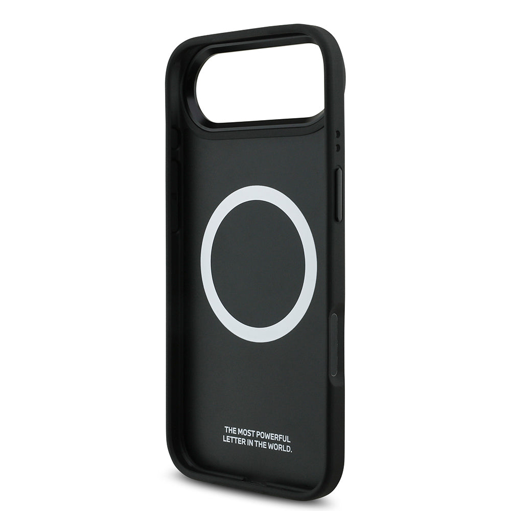 Apple iPhone 17 Air Kılıf BMW Orjinal Lisanslı M-safe Şarj Özellikli M Logolu Üç Şeritli Delikli Deri Kapak Siyah