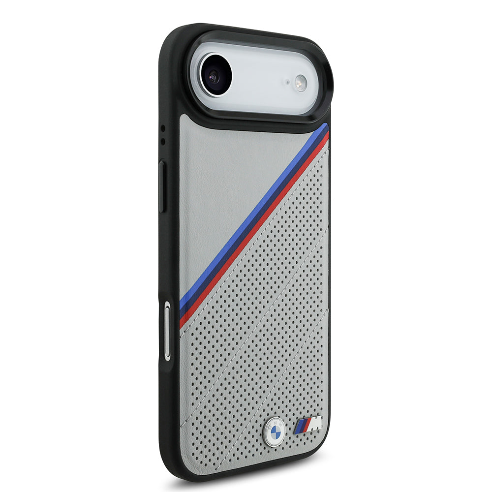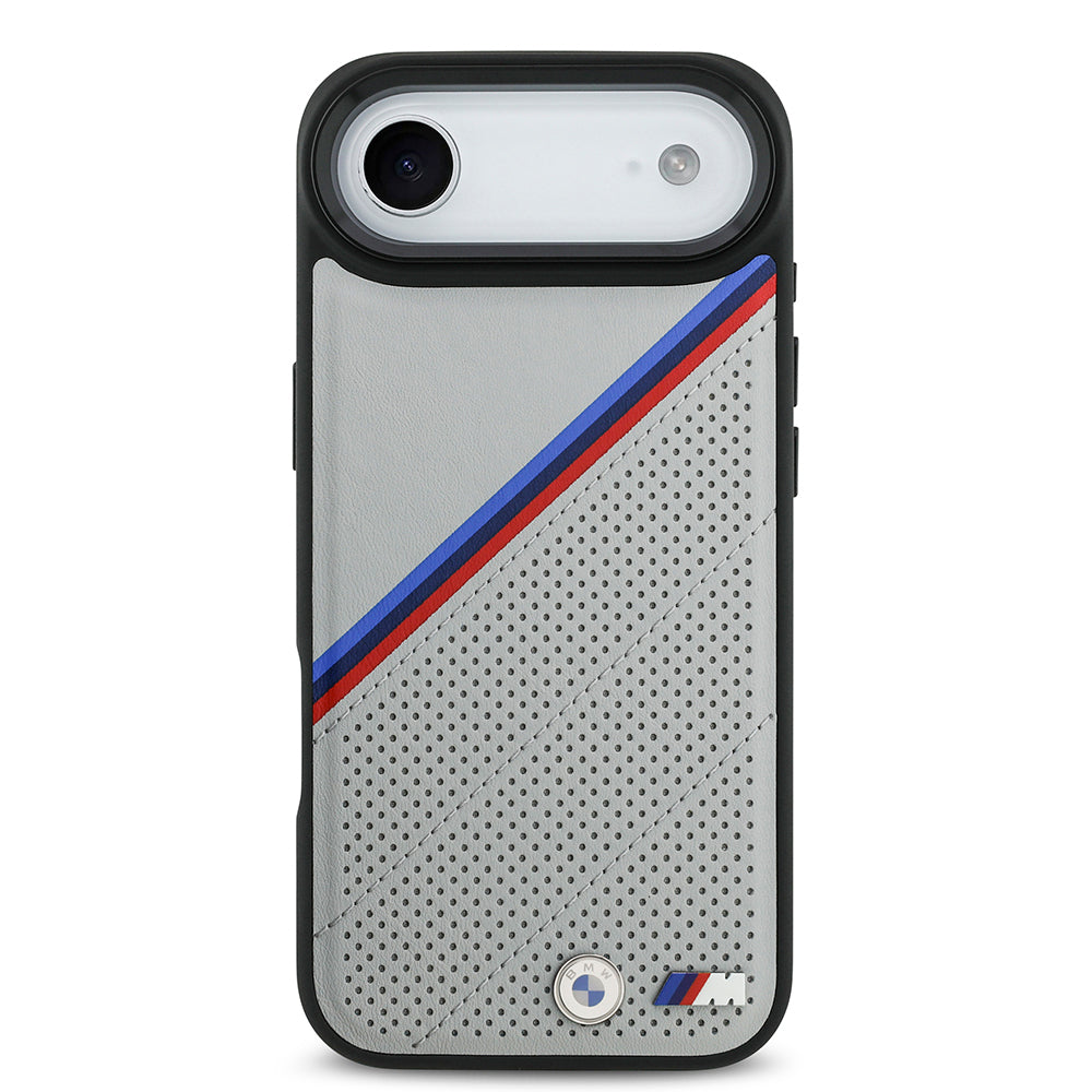 iPhone 17 Air Kılıf BMW Orjinal Lisanslı M-safe Şarj Özellikli M Logolu Üç Şeritli Delikli Deri Kapak
