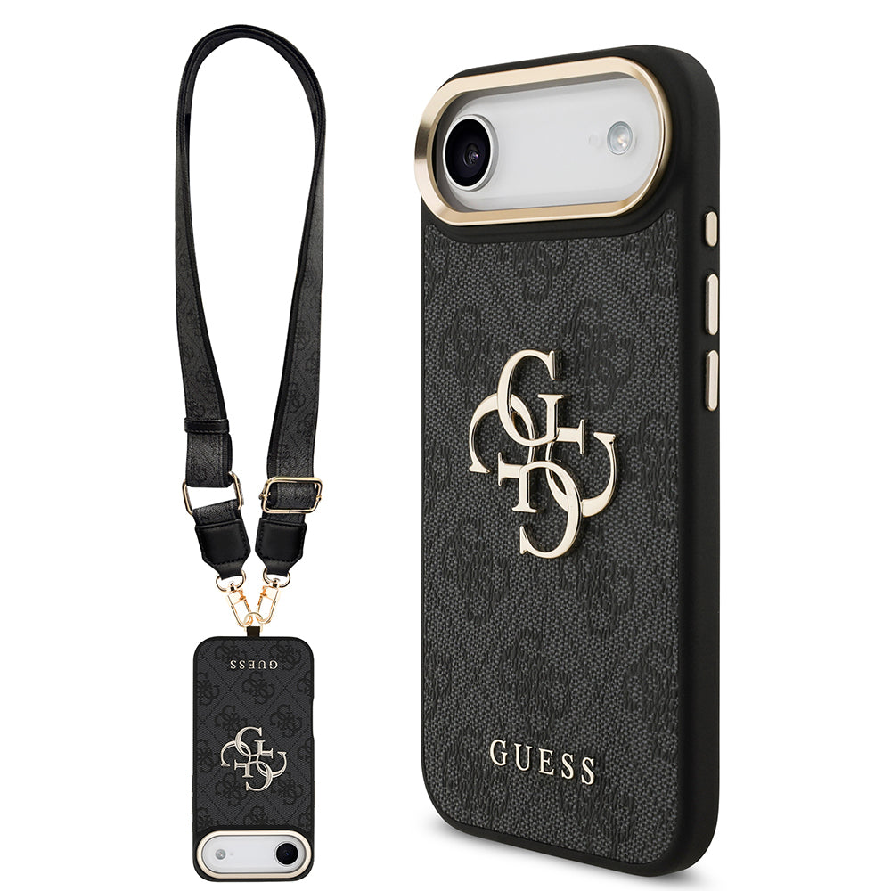 Apple iPhone 17 Air Kılıf Guess Orjinal Lisanslı 4G Büyük Metal Logolu Kalın Askılı Kapak Siyah