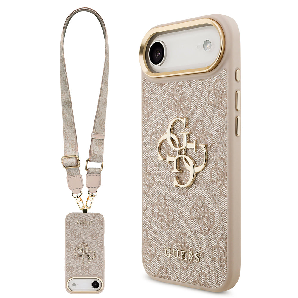 Apple iPhone 17 Air Kılıf Guess Orjinal Lisanslı 4G Büyük Metal Logolu Kalın Askılı Kapak Pembe