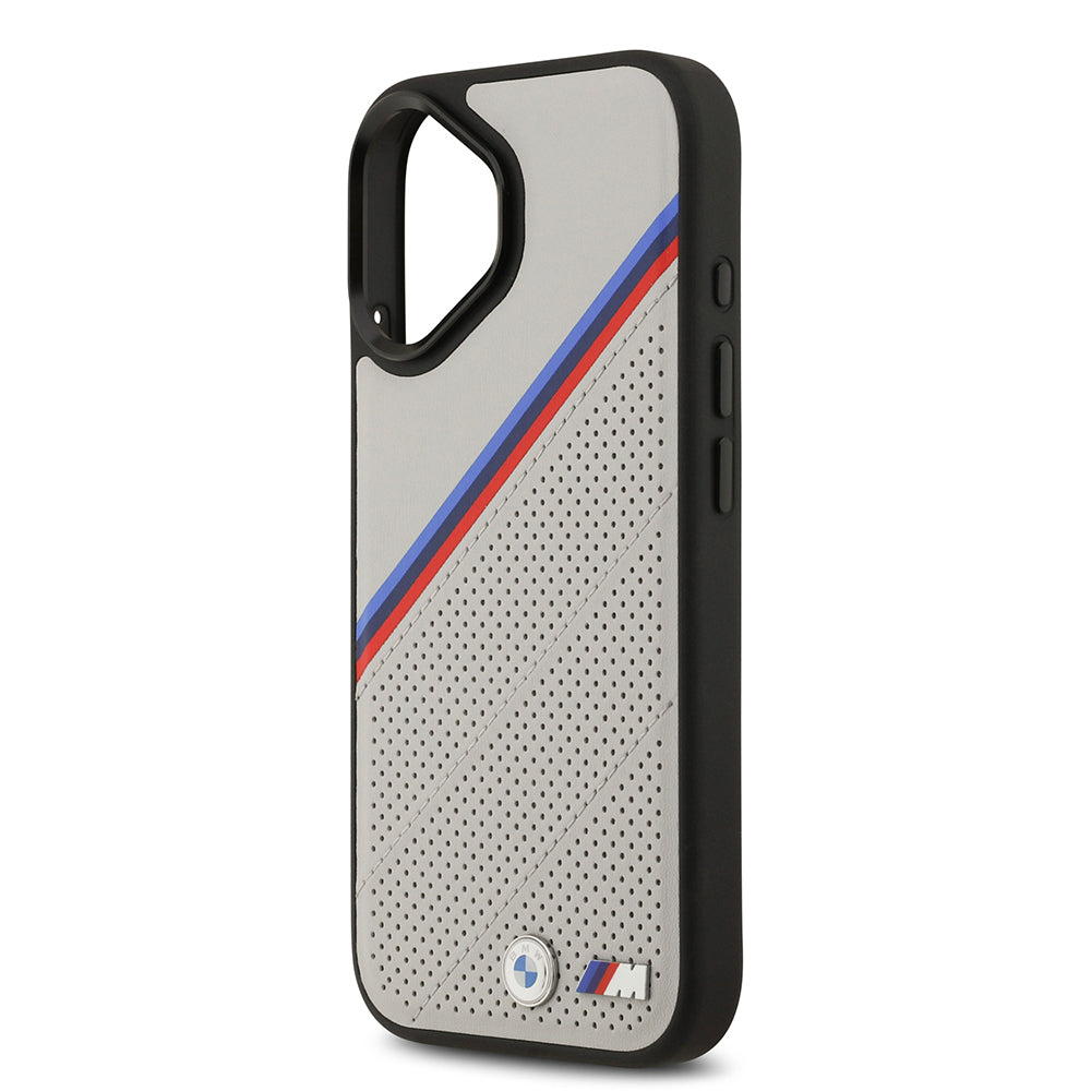 iPhone 17 Kılıf BMW Orjinal Lisanslı M-safe Şarj Özellikli M Logolu Üç Şeritli Delikli Deri Kapak