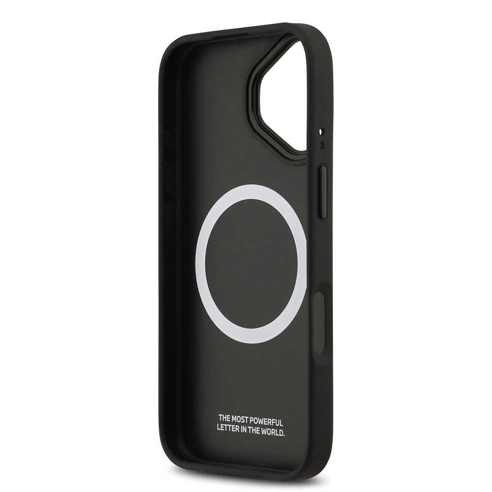 Apple iPhone 17 Kılıf BMW Orjinal Lisanslı M-safe Şarj Özellikli M Logolu Üç Şeritli Delikli Deri Kapak Siyah