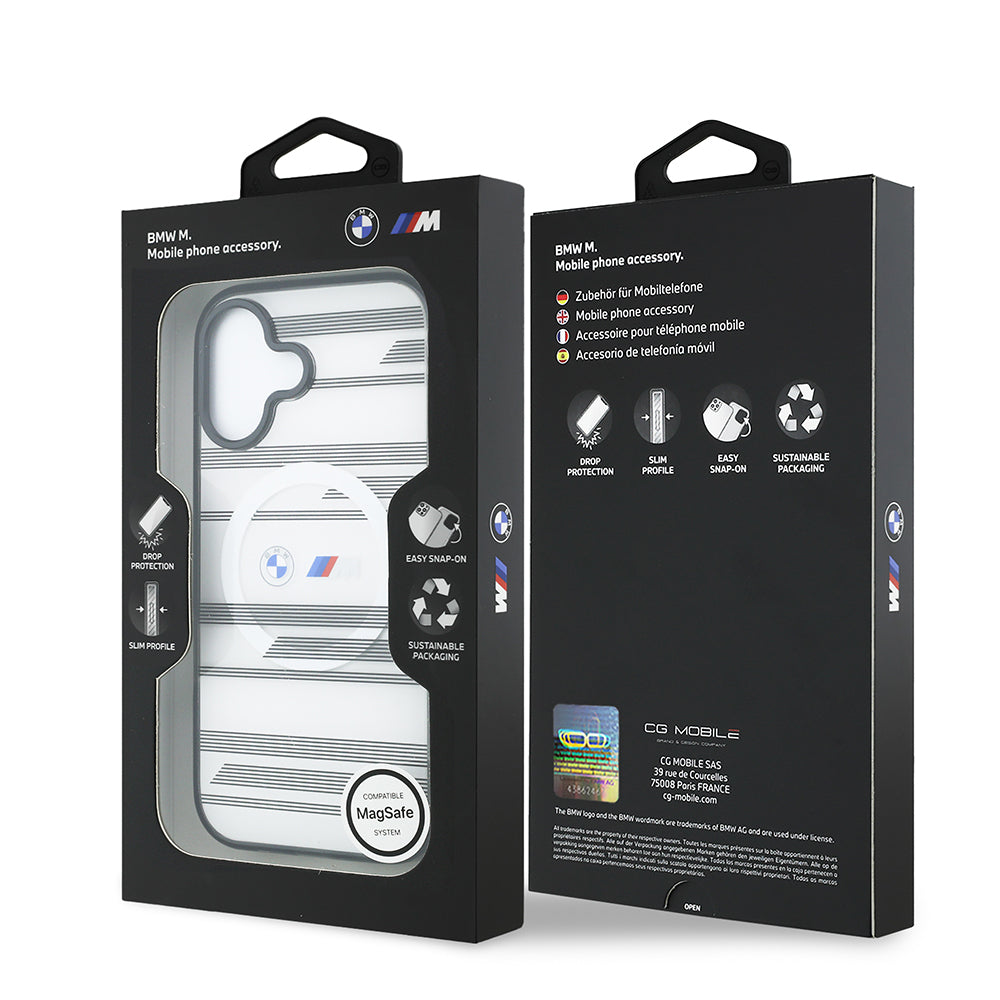 iPhone 17 Kılıf BMW Orjinal Lisanslı M-safe Şarj Özellikli Metal Kamera Butonlu Yatay Şeritli M Dizayn Kapak