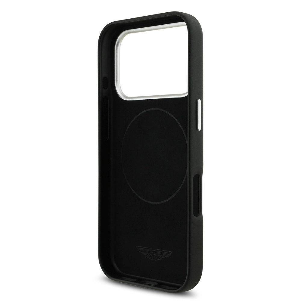 Apple iPhone 17 Pro Kılıf Aston Martin Orjinal Lisanslı M-safe Şarj Özellikli Metal Logolu PU Deri Kapak Siyah