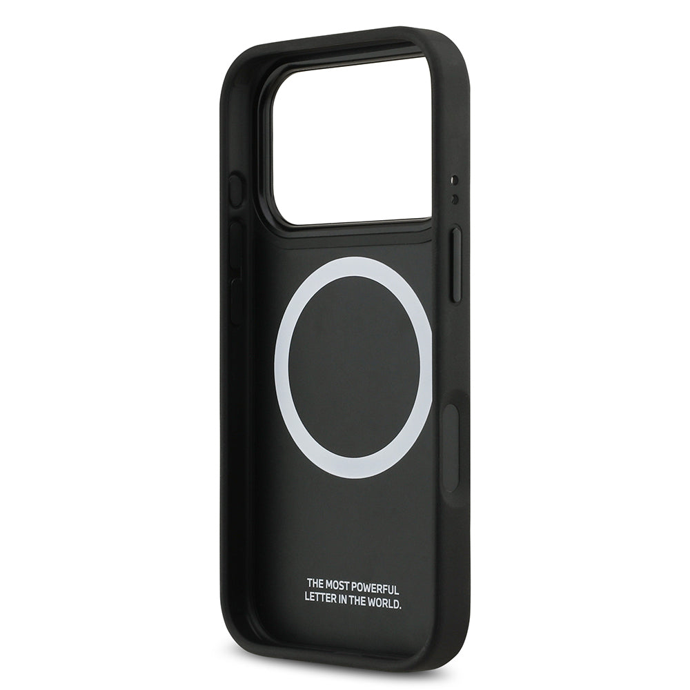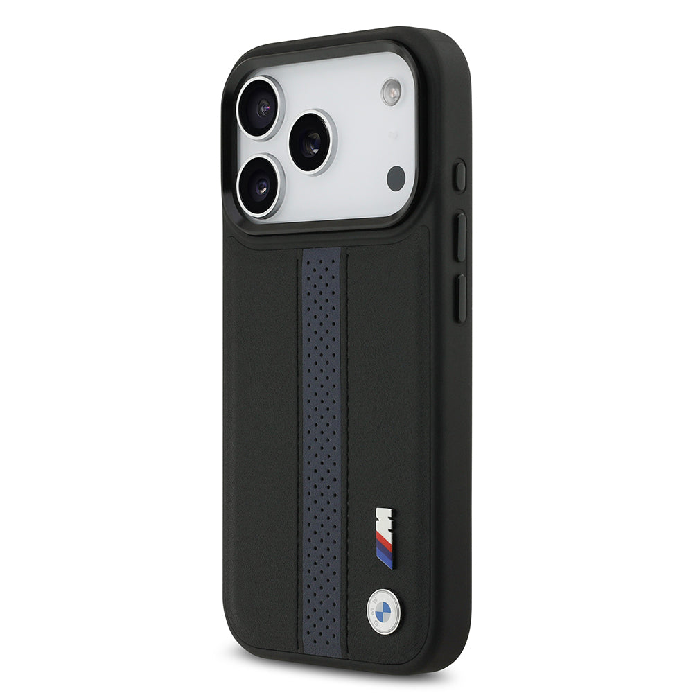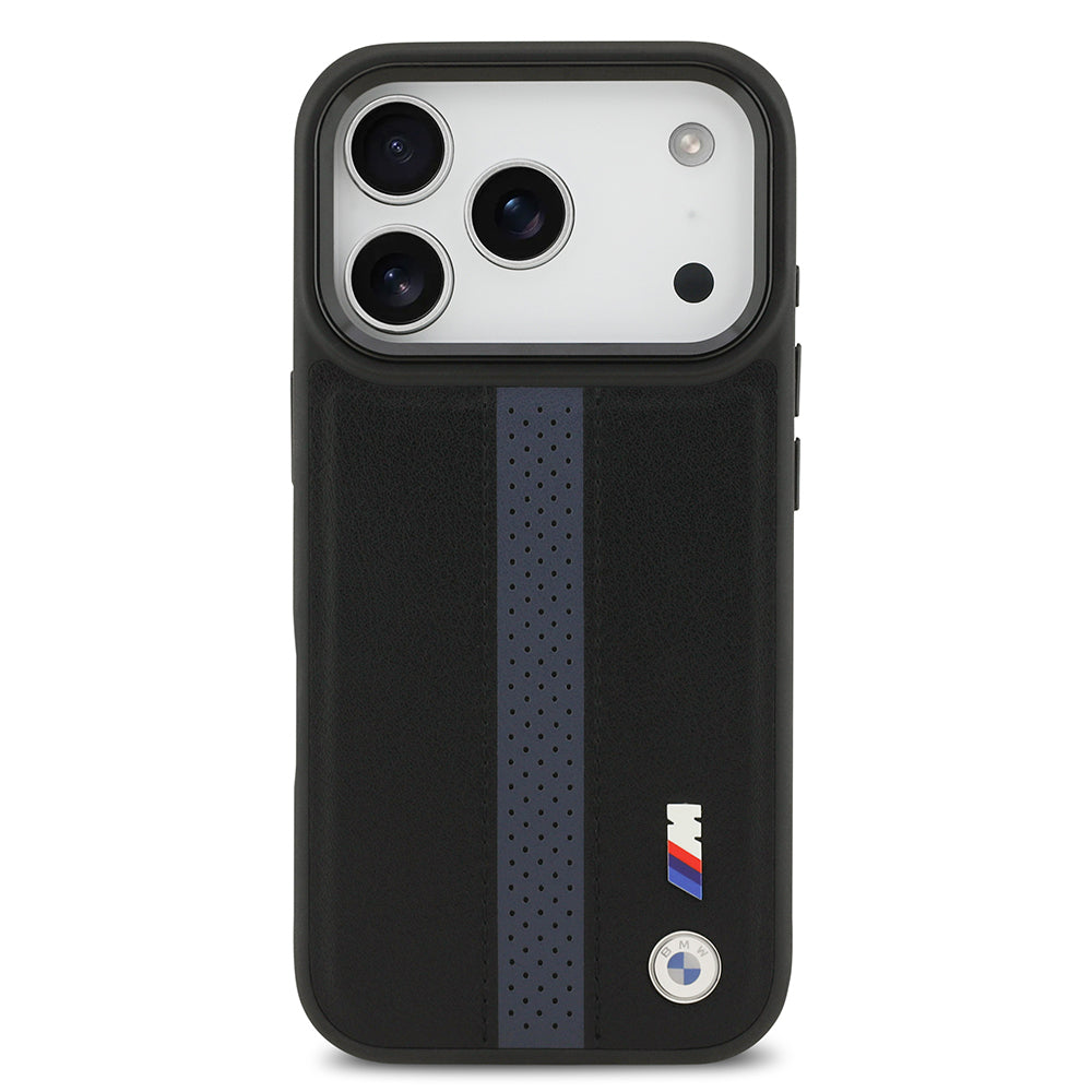 iPhone 17 Pro Kılıf BMW Orjinal Lisanslı M-safe Şarj Özellikli Deri Arka Yüzey Metal Logolu Delikli Şerit Tasarımlı Kapak