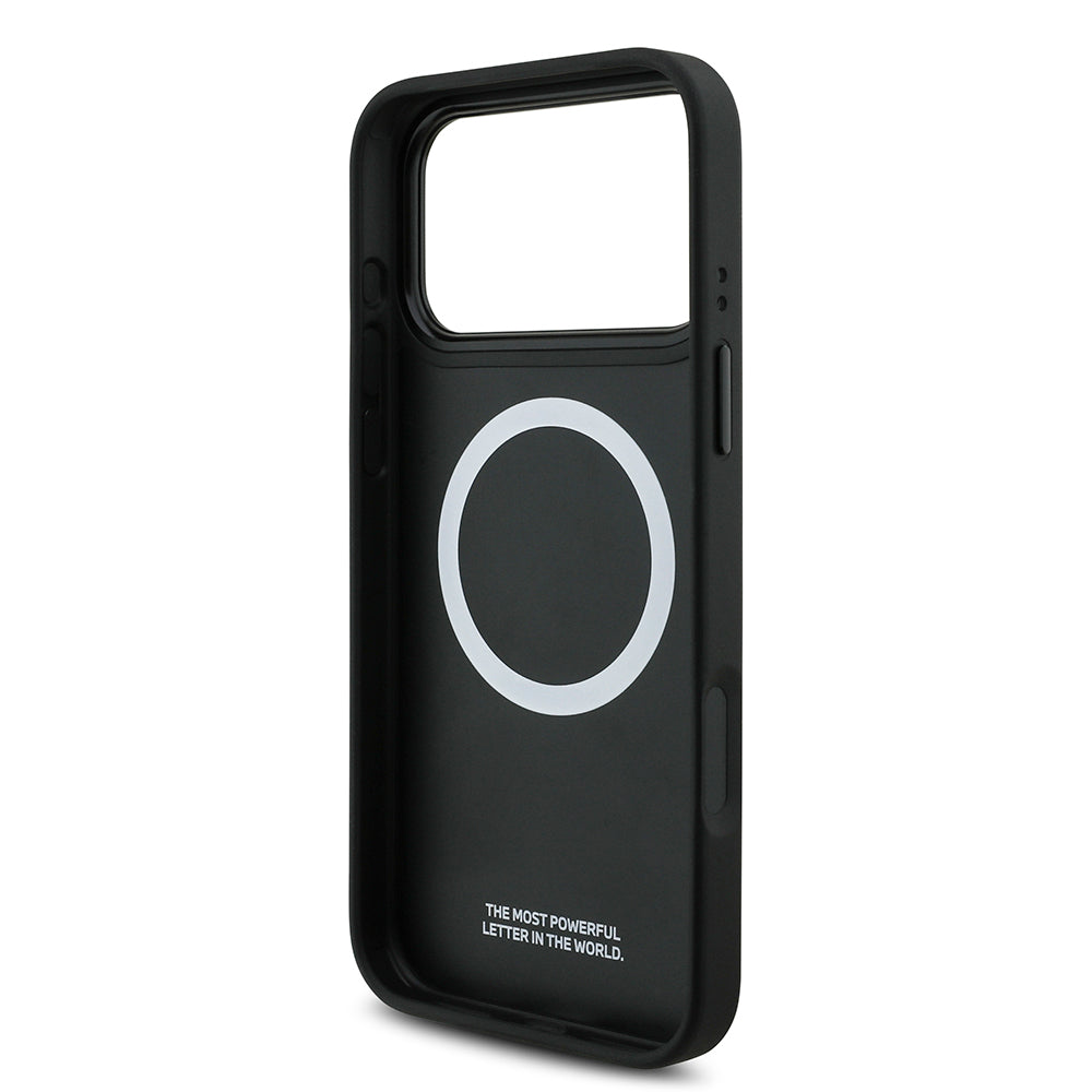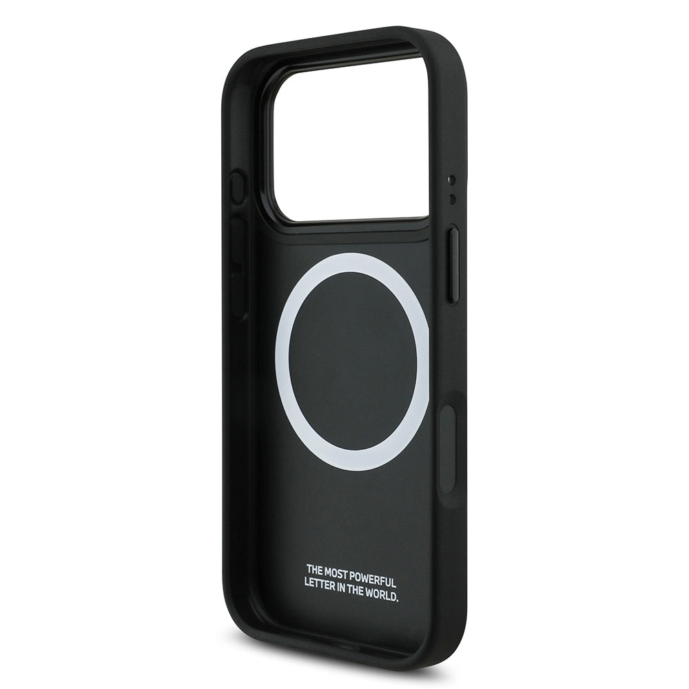 iPhone 17 Pro Kılıf BMW Orjinal Lisanslı M-safe Şarj Özellikli Deri Arka Yüzey Metal Logolu Delikli Şerit Tasarımlı Kapak