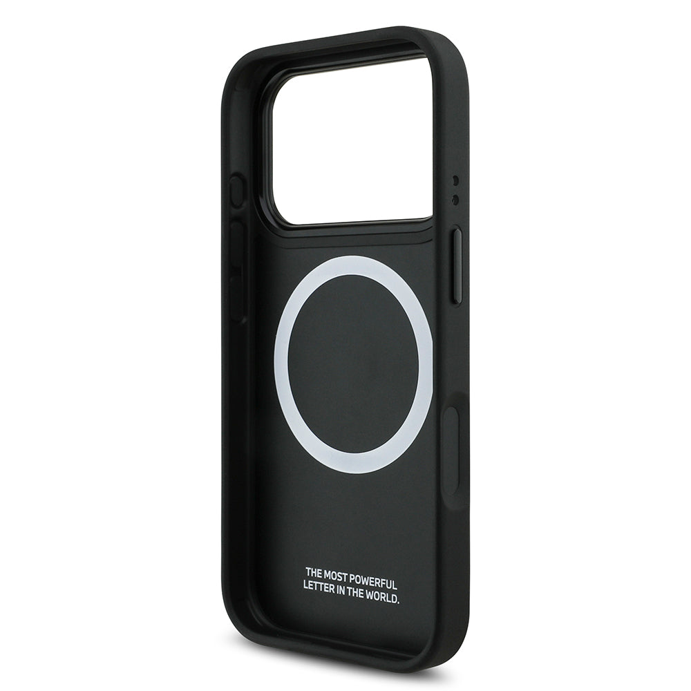 iPhone 17 Pro Kılıf BMW Orjinal Lisanslı M-safe Şarj Özellikli M Logolu Üç Şeritli Delikli Deri Kapak