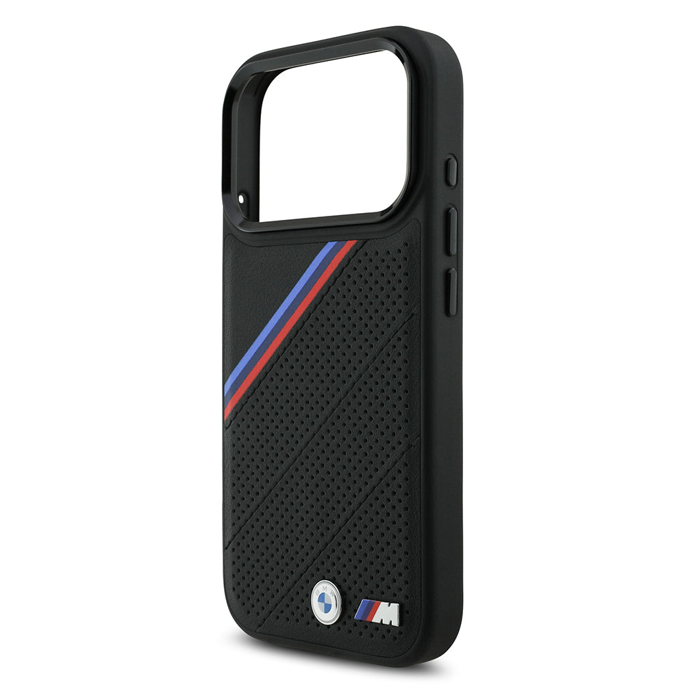 iPhone 17 Pro Kılıf BMW Orjinal Lisanslı M-safe Şarj Özellikli M Logolu Üç Şeritli Delikli Deri Kapak