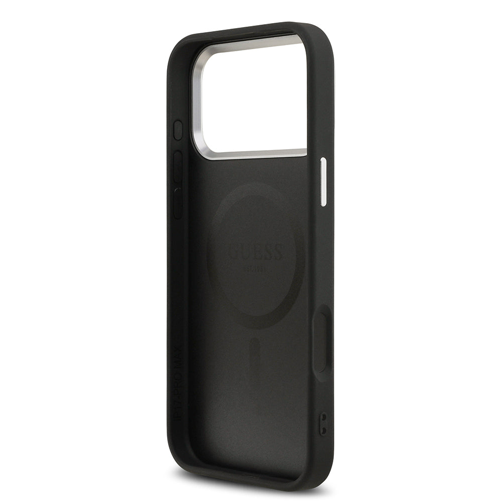 iPhone 17 Pro Kılıf Guess Orjinal Lisanslı M-safe Şarj Özellikli PU Deri Metal Kamera Çerçeveli Üçgen Logolu Kapak