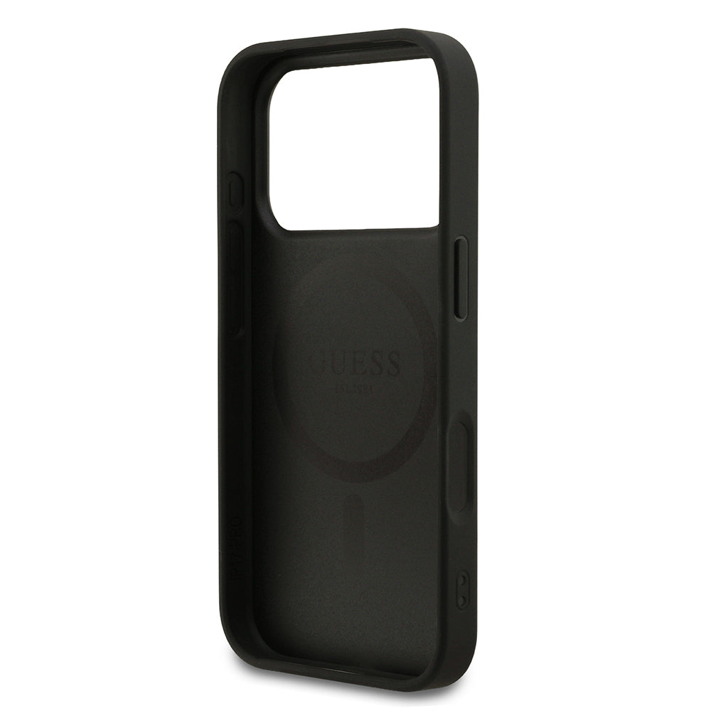 Apple iPhone 17 Pro Kılıf Guess Orjinal Lisanslı M-safe Şarj Özellikli Yazı Logolu PU Deri Kapak Siyah