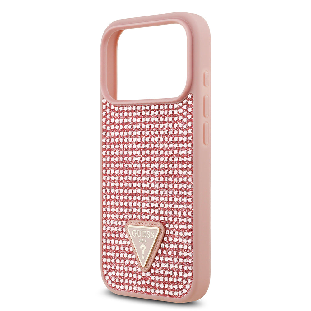 iPhone 17 Pro Kılıf Guess Orjinal Lisanslı Taşlı Arka Yüzey Üçgen Logolu Kapak