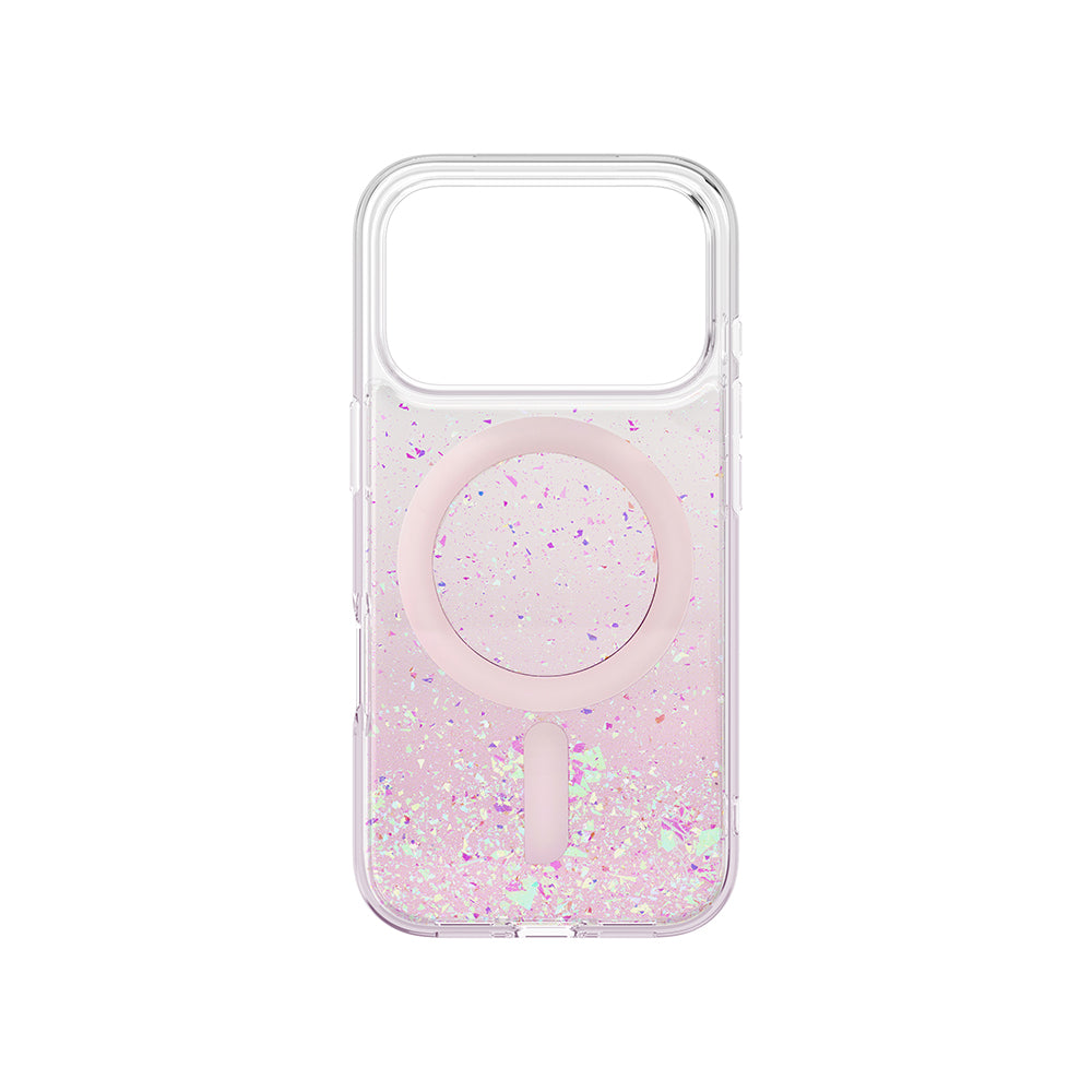 Apple iPhone 17 Pro Kılıf M-safe Şarj Özellikli Hologram Parçalı Coehl Rosara Kapak Pembe