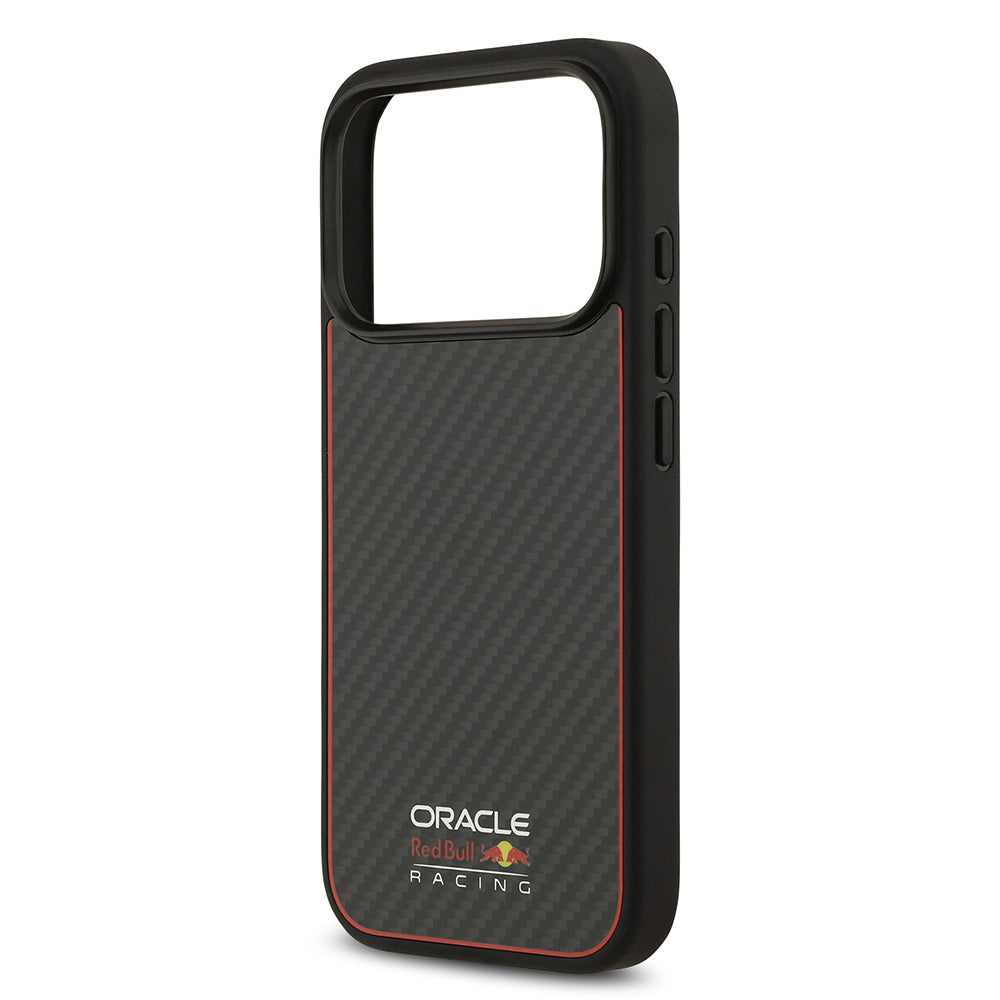 Apple iPhone 17 Pro Kılıf Redbull Orjinal Lisanslı M-safe Şarj Özellikli Karbon Fiber Parlayan Logolu Kevlar Kapak Siyah