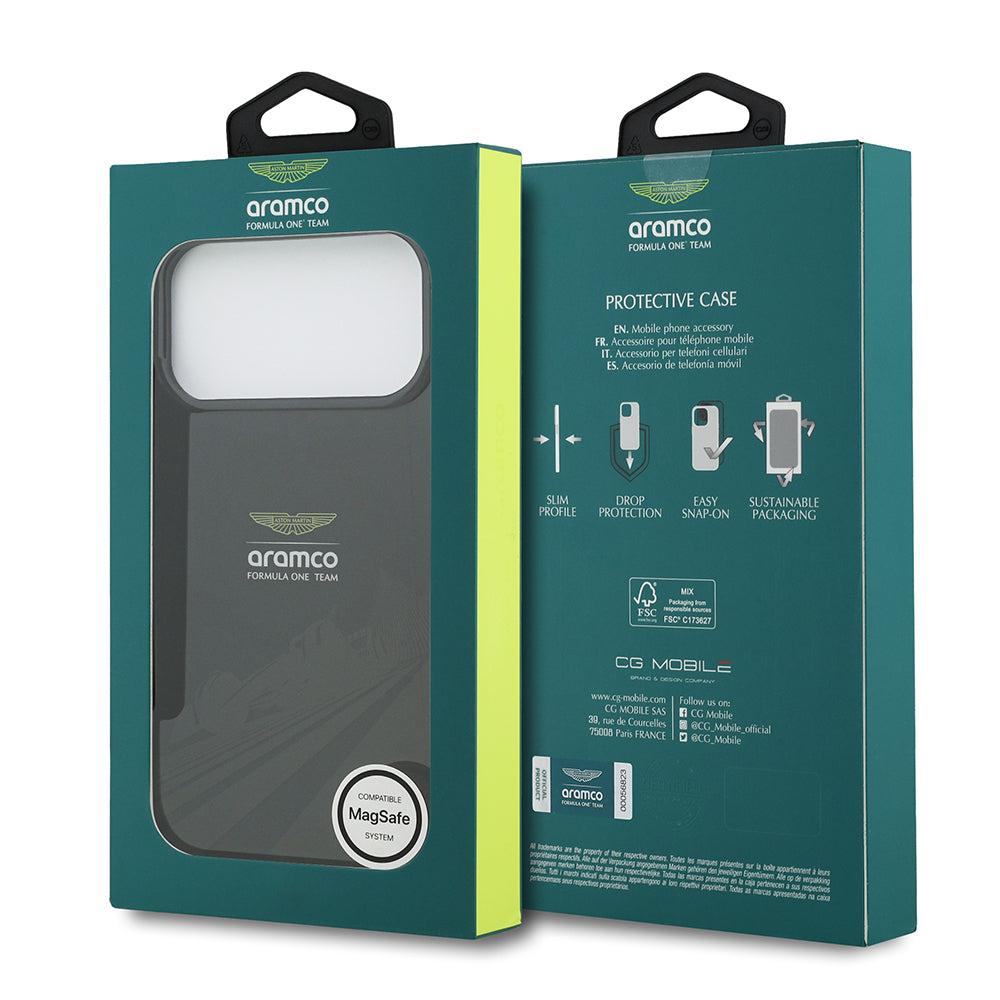 Apple iPhone 17 Pro Max Kılıf Aston Martin Orjinal Lisanslı M-safe Şarj Özellikli IML Baskı Logolu Formula Tasarımlı Kapak Siyah