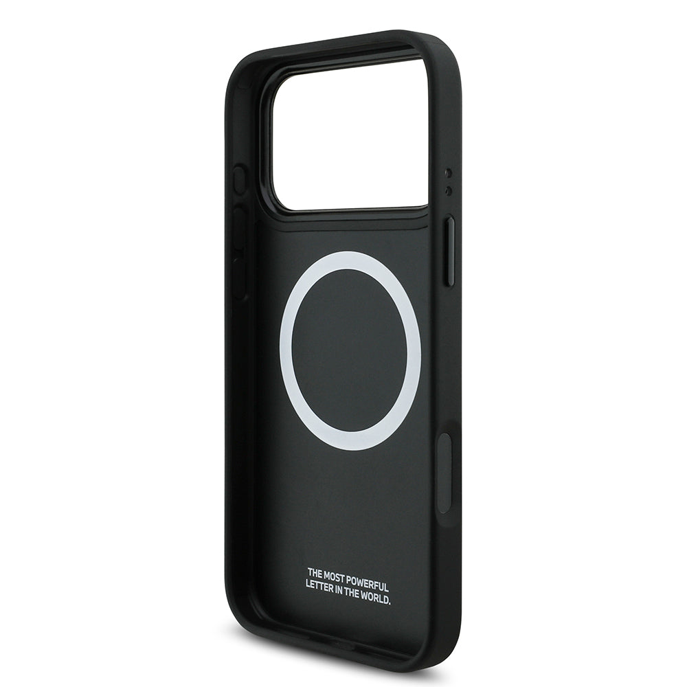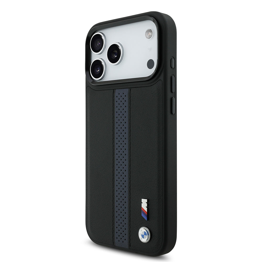 iPhone 17 Pro Max Kılıf BMW Orjinal Lisanslı M-safe Şarj Özellikli Deri Arka Yüzey Metal Logolu Delikli Şerit Tasarımlı Kapak